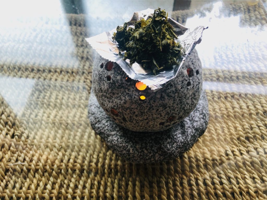 ・茶香炉であぶるとお部屋の消臭とリラックス作用。(焦げやすいので、アルミホイルの上に茶葉を乗せるて焚くのが片づけが楽です)
