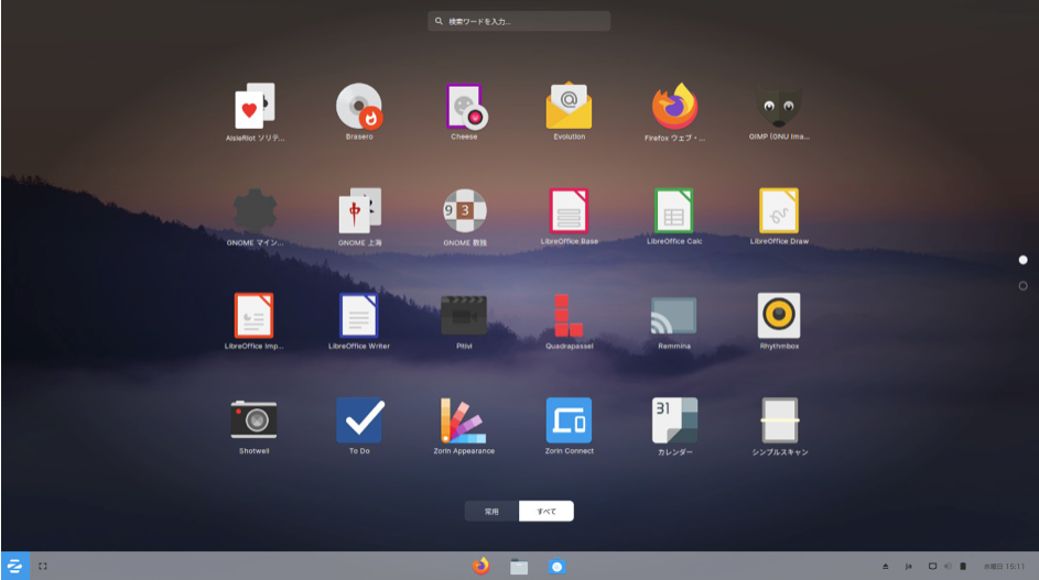 elementaryOSがMac風だとすると、ZorinOSはWindows風のディストリビューションです(Mac風にもできます)。